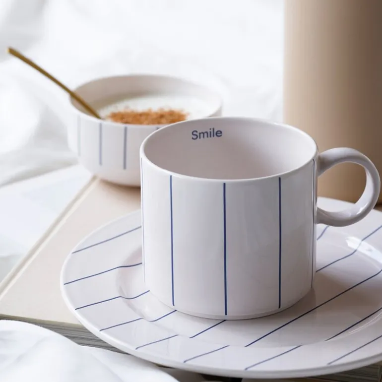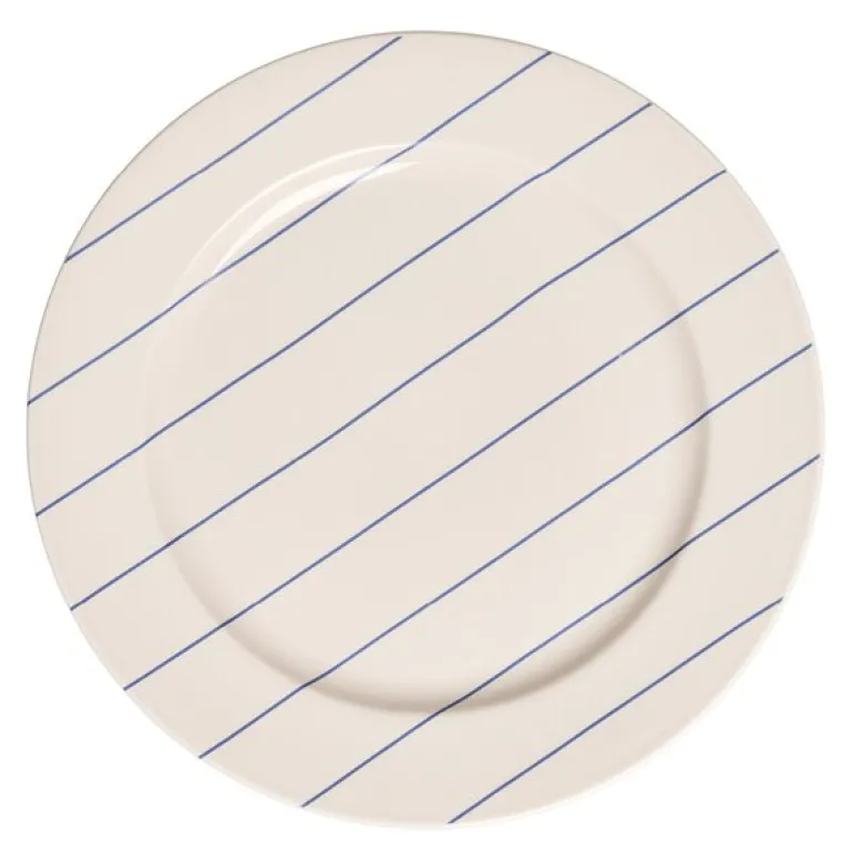 Pyjamas tallerken 23 cm beige/midnight blue fra Design Letters gir serveringen et avslappet og moderne preg. Den kombinerer en myk pastellbeige tone med elegante striper i midnight blue, noe som gjør den til et naturlig valg for frokost, småmåltider eller en kveldsrett.