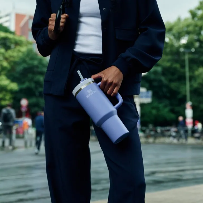 Stanley Quencher 1,18L i den livlige fargen Hydrangea er en ideell følgesvenn for travle dager. Det komfortable håndtaket, den slanke formen og FlowState™-lokket med tre funksjoner gjør flasken enkel å bruke og bære. Vakuumisolasjon sørger for at vannet holder seg kaldt i opptil 9 timer. En stilfull og robust flaske til alle hverdagens behov.