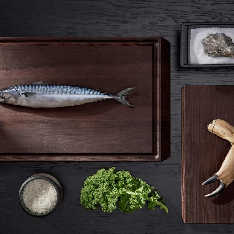 Kjøkkenserien RÅ er designet i samarbeid med kokken Jesper Vollmer. Fokuset for serien, som er laget av varmebehandlet termoask ligger i gode redskaper i kvalitetsmaterialer, brukervennlig nordisk design og et godt grep. Det store skjærebrettet er vendbart, og er egnet til både kutting, servering og oppskjæring av stek. Treet er FSC-sertifisert.
