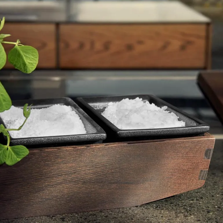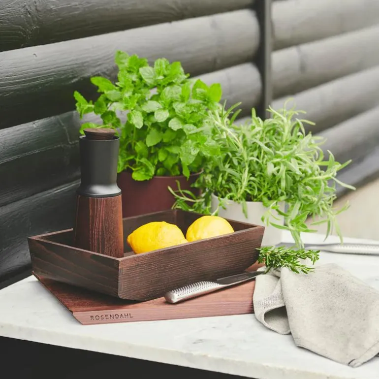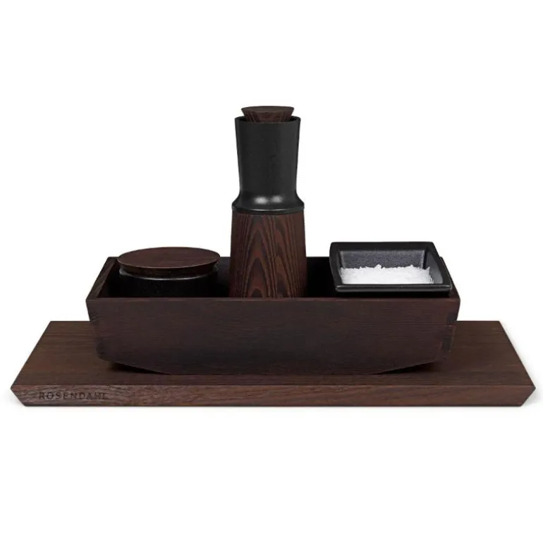 Kjøkkenserien RÅ fokuserer på godt håndverk og brukervennlig nordisk design. Godt grep og funksjonalitet er kjernen i serien, som er laget i varmebehandlet og gjennomfarget ask. Krydderbakken har en opphøyet bunn for enklere håndtering, og er ment for arbeidsstasjonen rundt kokeplaten slik at du enkelt kan oppbevare oljer og krydder i umiddelbar nærhet. Saltkaret i samme serie passer perfekt i krydderbakken. RÅ-serien inneholder i tillegg kvern, saltkar og skjærebrett. En super gave til de som setter pris på nordisk design og fine redskaper på kjøkkenet.