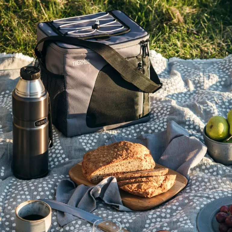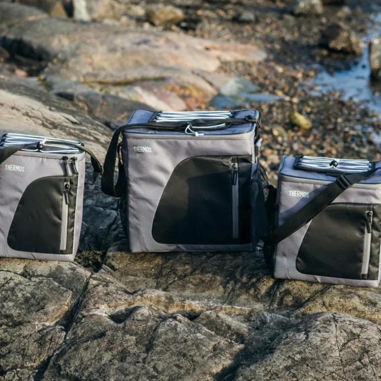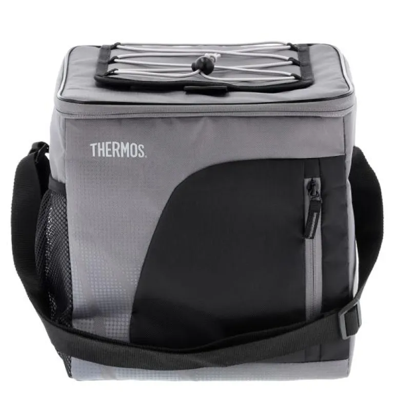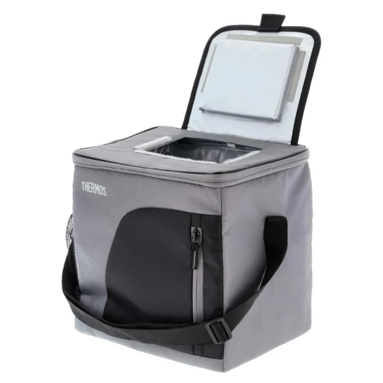Thermos Radiance kjølebag med plass til 24 bokser. Kjølebagen holder drikken iskald når du for eksempel skal på stranden eller i skogen. Justerbar skulderstropp, praktisk oppbevaringsnett på siden og et lite, ekstra rom foran. 25,4 x 21,6 x 28 cm. Kjølebagen har romslig og smart design, og den kan enkelt brettes sammen, slik at den ikke tar så mye plass. Fra toppen av kjølebagen er det en praktisk borrelås som gjør det enkelt å få tak i det kalde innholdet. Laget av polyester. Grå/svart.