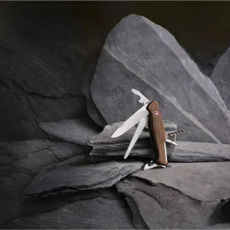 Ranger Wood 55 er full av verktøy som hjelper deg med å få jobben gjort. De 10 unksjonene inkluderer en tresag og et stort låseblad. Men det som skiller seg mest ut er skjønnheten i de elegante valnøtt sidedekslene. Dei er det første du vil legge merke til når du ser kniven og de er det du vil huske mest når du legger den i lommen.Mottaker av Red Dot Award: Product Design 2015.Victorinox er et gammelt kvalitetsmerke på kniver fra Sveits.Det begynte med de verdensberømte Swiss Army Knives og produserte etterhvert kniver både til profesjonellt bruk og til hobby kokker.Victorinox har fokus på kvalitet, innovasjon og tradisjon.