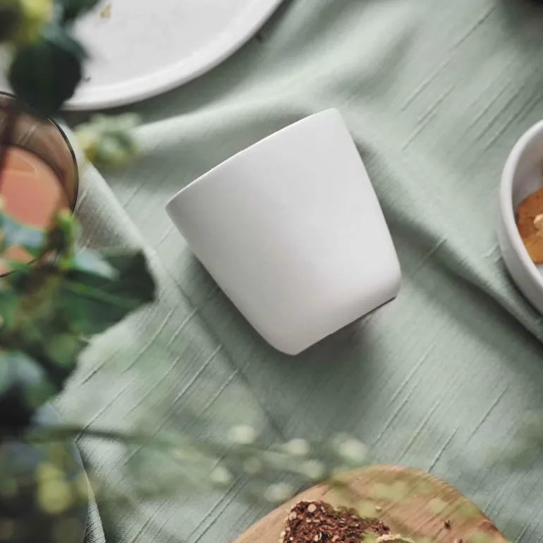 RAW ARCTIC WHITE krus uten håndtak – kjenn på den isete luften som nesten gjør vondt i lungene, hør på roen som den nyfalne snøen gir, hvor den eneste lyden er elvens rennende vann som spiller i vintersolen – som gir deg følelsen å være helt alene i det arktiske underlandet.