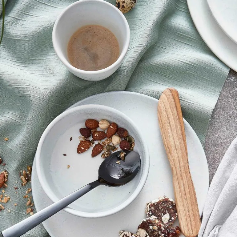 De mange variasjonene i farge og tekstur gjør hvert stykke unikt og gir varene et håndlaget utseende. En eksklusiv rå gjennomfarget steintøyleire som er dobbeltfyrt for å oppnå høyeste kvalitet og lang holdbarhet – RAW Arctic White steintøy er laget for daglig bruk i det nordiske hjemmet.