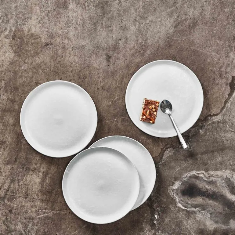 RAW ARCTIC WHITE asjett/desserttallerken- kjenn på den isete luften som nesten gjør vondt i lungene, hør på roen som den nyfalne snøen gir, hvor den eneste lyden er elvens rennende vann som spiller i vintersolen – som gir deg følelsen å være helt alene i det arktiske underlandet.
