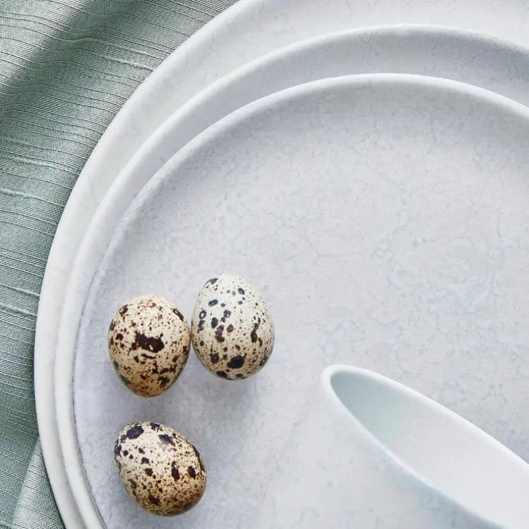 De mange variasjonene i farge og tekstur gjør hvert stykke unikt og gir varene et håndlaget utseende. En eksklusiv rå gjennomfarget steintøyleire som er dobbeltfyrt for å oppnå høyeste kvalitet og lang holdbarhet – RAW Arctic White steintøy er laget for daglig bruk i det nordiske hjemmet.
