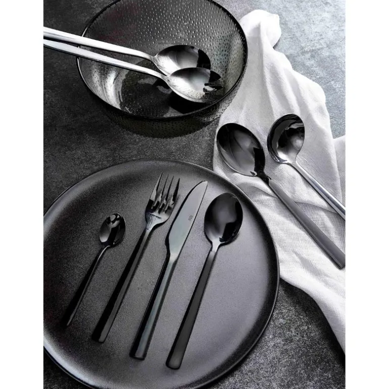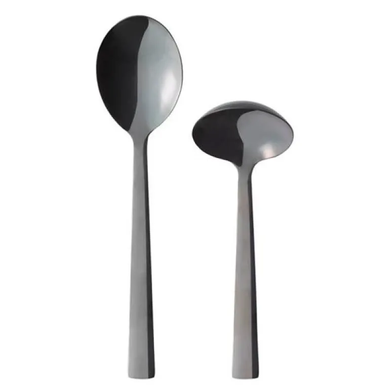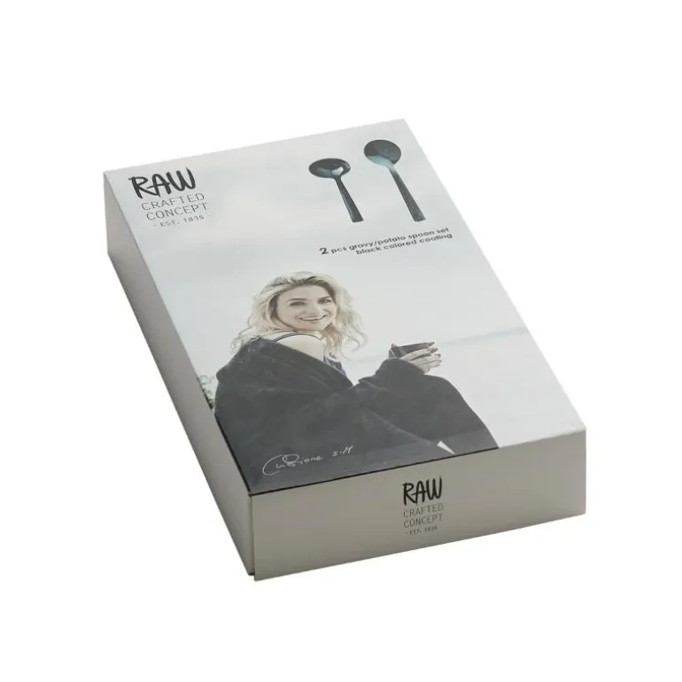 RAW sauce/potetsett i svart- Enkelt og stilrent sett fra Raw-serien!Her får du en salatskje og salatgaffel fremstilt i 18/10 rustfritt stål designet i samarbeid med Christiane Schaumburg-Müller.Rustfritt stål er et robust materiale som tåler oppvaskmaskin, men det er alltid viktig å skylles eller vaskes rett etter bruk da syre av maten kan skade dette. Bestikket må aldri legges i bløt!