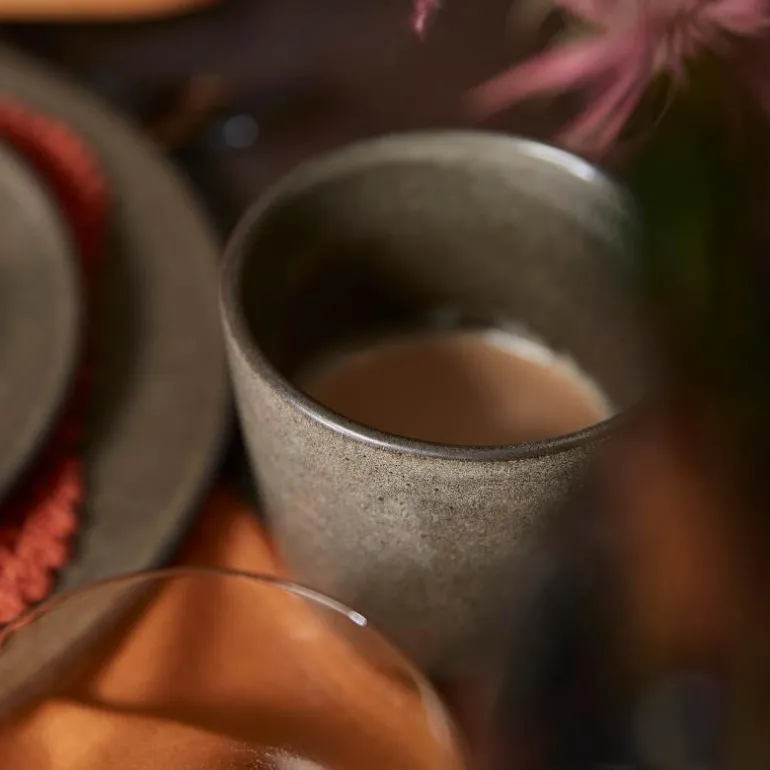 RAW Glasuren: Det brukes mange mekanismer for å skape utseendet på det elegante RAW steintøyet. Glasuren på steintøyet består ikke av en homogen, fast farge, men varierer i farge og tekstur på grunn av den kjemiske prosessen i ovnen. Her utvikler glasuren seg forskjellig fra del til del, og derfor varierer serviset i fargemetning, krystallisering og lagdeling. Denne teknikken er høyt verdsatt av mange keramikere. En eksklusiv, rå gjennomfarget steintøysmasse som er dobbelt-brent for å oppnå høyeste kvalitet og høy slitestyrke – RAW Forest Brown steintøy er fremstilt til hverdagsbruk i det nordiske hjemmet.