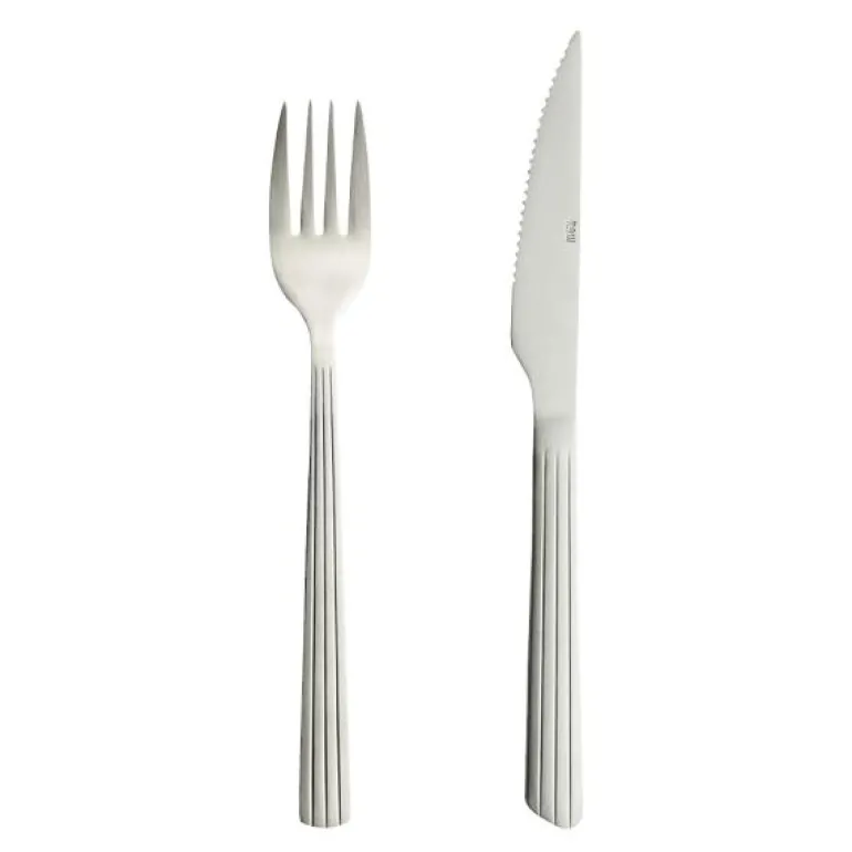 Bestikksett, grill i 8 deler, fra RAW serien til Aida. Bestikket i rustfritt stål har et rått og enkelt uttrykk, som er som skapt for den nordiske borddekkingen. Designet er utarbeidet i samarbeid med Christiane Schaumburg-Müller.