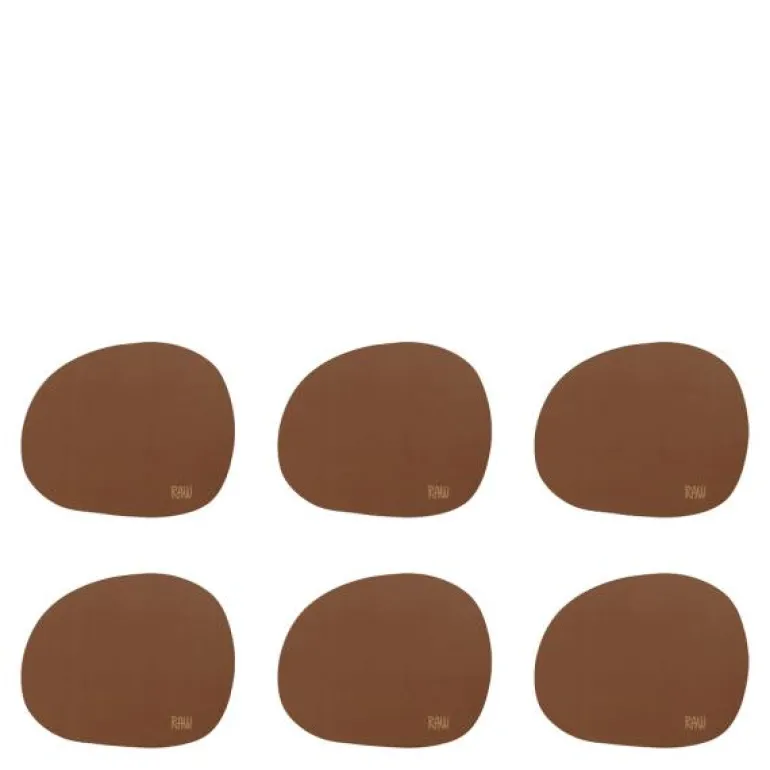 Sett med 6 glassbrikker i fargen mocca, fra serien Raw Organic til danske Aida. RAW glassbrikker skaper et moderne og avslappet look i et skandinavisk hjem. Plasser en drink, vann eller kaffe på denne coasteren med en fin organisk form. Designet er rått og vakkert, og du kan bruke coasterne til både hverdag og fest.