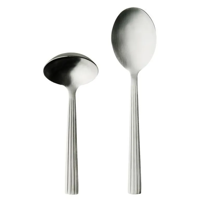 Serveringssett i 2 deler, saus og potetskje, fra RAW serien til Aida. Bestikket i rustfritt stål har et rått og enkelt uttrykk, som er som skapt for den nordiske borddekkingen. Designet er utarbeidet i samarbeid med Christiane Schaumburg-Müller.