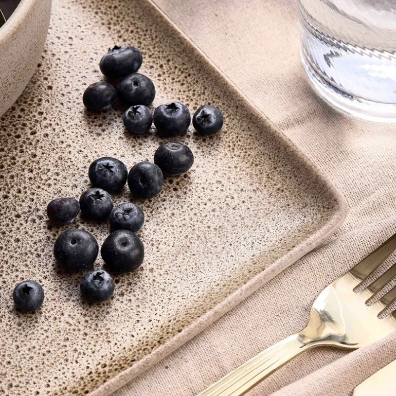 Den varme beige tonen er inspirert av naturlige nordiske sanddyner og fremheves av små glitrende prikker i glasuren som gir en diskret, men sofistikert effekt. Med riktig vedlikehold kan tallerkenen trygt brukes i ovn, mikrobølgeovn, fryser og oppvaskmaskin.