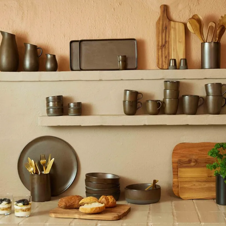 Med sin dype, sorte fargetone, er denne redskapskrukken perfekt for å skape et sofistikert, rått uttrykk på kjøkkenet ditt. Den kan enkelt kombineres med andre elementer i sort-i-sort stil, eller brukes som en kontrast i et mer variert design.
