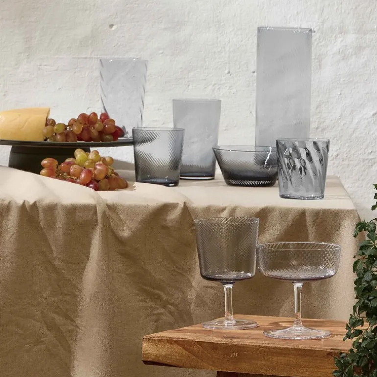 RAW Unique-serien er kjent for sine to unike mønstre: Swirl, med sine tette og tynne linjer, og Optikk, med bredere linjer. Swirl-mønsteret på dette highball-glasset skaper en dynamisk visuell effekt som gir dybde og karakter til designet. Aida, med sitt fokus på å designe funksjonelle produkter med en estetisk tilnærming, tilbyr her et glass som kombinerer skjønnhet og funksjonalitet på en eksepsjonell måte.