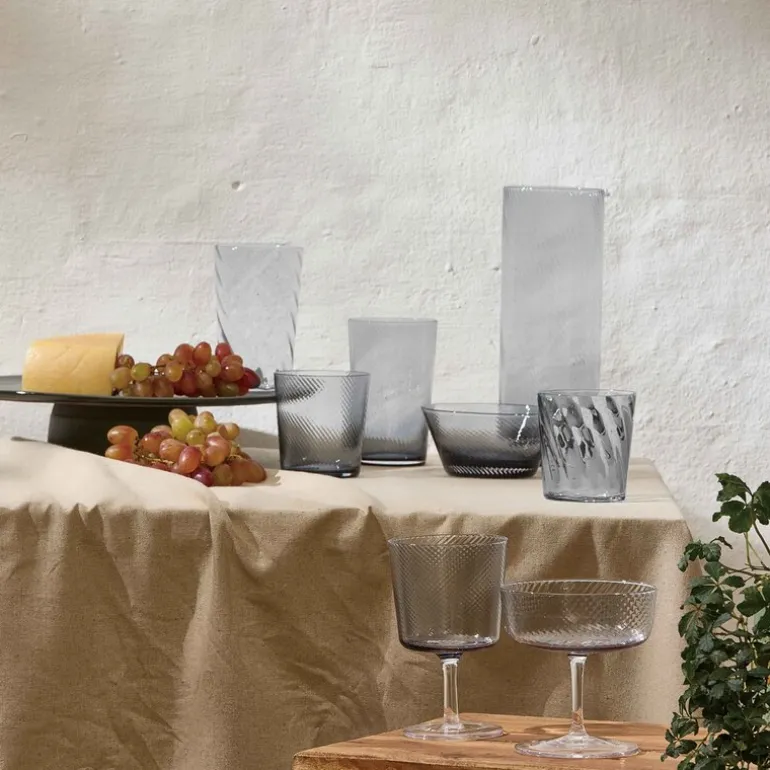 RAW Unique-serien tilbyr to særegne mønstre: Swirl, med sine tette og fine linjer, som kjennetegner dette vannglasset, og Optikk, med sine bredere linjer. Swirl-mønsteret skaper en dynamisk visuell effekt som gir glasset dybde og karakter, noe som gjør det ideelt for både hverdagsbruk og mer spesielle anledninger.