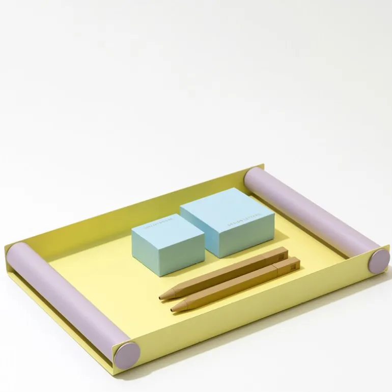 Ray brett 20×30 cm gul/lavendel fra Design Letters er et allsidig brett med moderne farger og en elegant matt finish. Laget i pulverlakkert stål, er brettet motstandsdyktig mot etsning, misfarging og skader, og har en overflate som holder seg pen over tid.