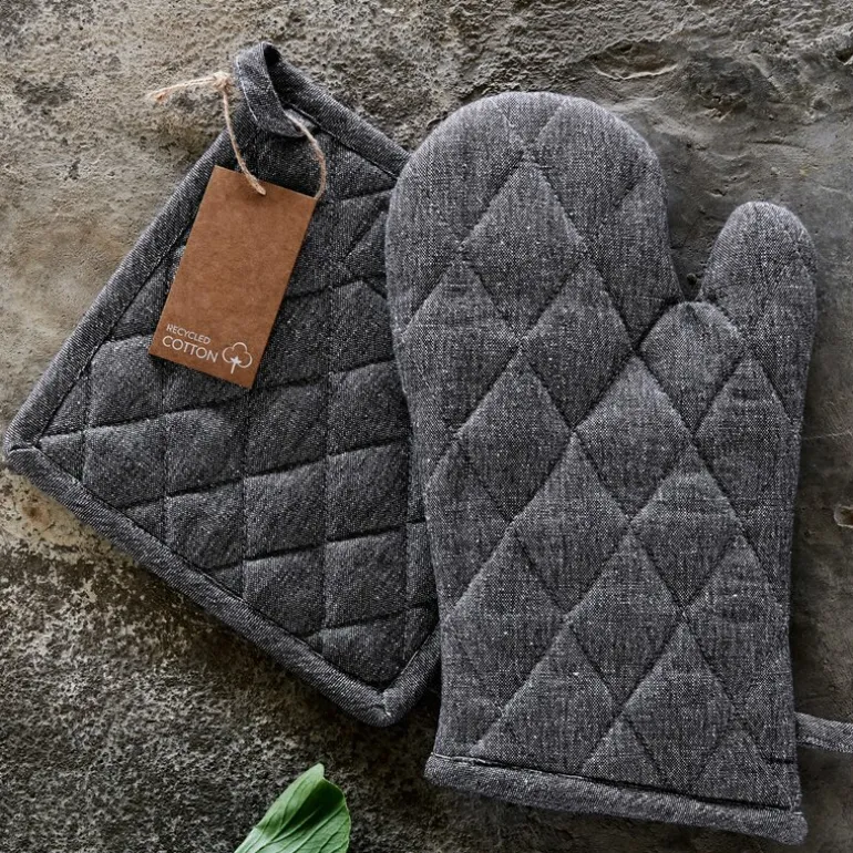 Pillivuyts Recycle gryteklut i grått måler 22,5 x 22,5 cm og er laget av resirkulerte tekstilrester. Materialet oppstår gjennom en prosess der stoffrester sorteres etter farge, rives til fibre, spinnes og veves på nytt. Dette gir en slitesterk gryteklut som er godt egnet til daglig bruk.