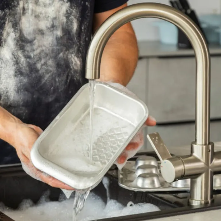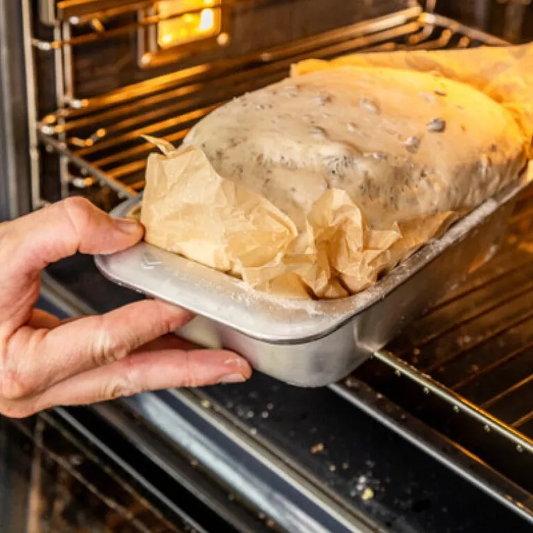 Laget av sertifisert resirkulert aluminium, har denne brødformen en slitesterk 1,2 mm tykkelse som hindrer vridning og sikrer lang levetid. Den kantede rammen gjør det enkelt å flytte formen til og fra ovnen, og den kan også stables, noe som sparer plass i kjøkkenskapet. Aluminiumets overlegne varmefordeling sikrer jevn og rask oppvarming, slik at både søte og salte bakverk får perfekt stekeskorpe og konsistens. Formen tåler temperaturer opp til 180 °C og anbefales håndvask for best mulig bevaring.