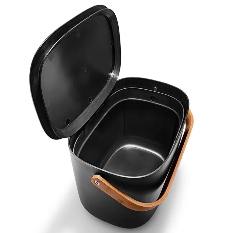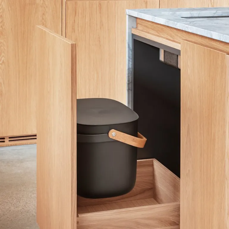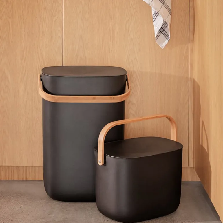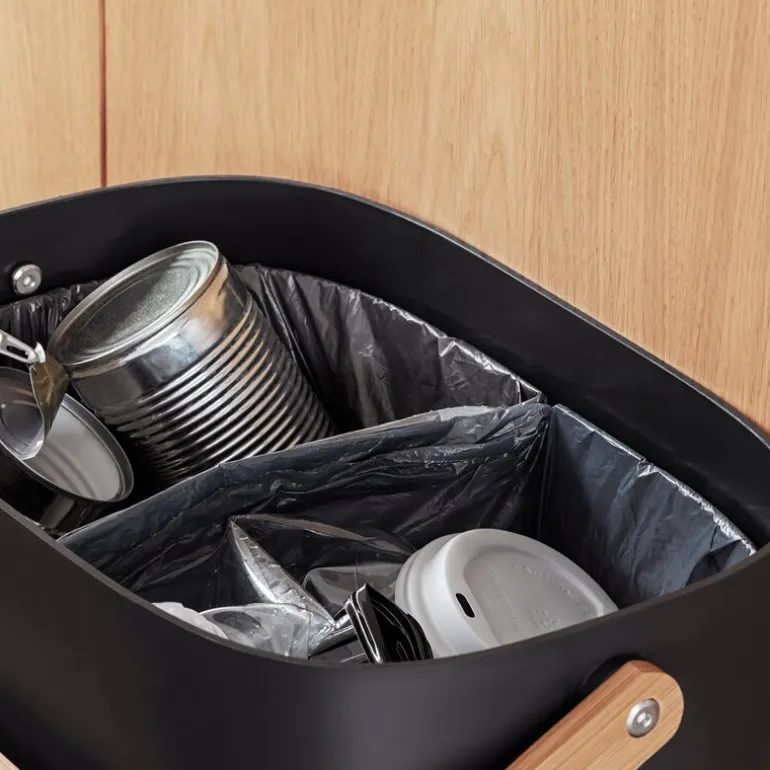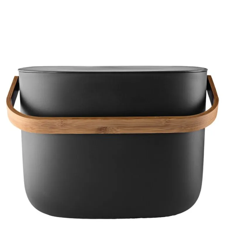 Reflect avfallsbøtte 16L til 2 poser svart fra Eva Solo. En søppelbøtte trenger hverken være ulekker eller oppbevares skjult. Elegante Reflect Kildesorteringsbeholder kan stå framme som en del av interiøret mens den gjør det lettere å holde hjemmet rent og pent. Med en eller flere kildesorteringsbeholdere kan du aktivt redusere mengden avfall som sendes til forbrenning, samtidig som du støtter gjenbruk og kompostering ved å separere avfall fra gjenbrukbare materialer som papir, plast, metall og glass. Beholderne kan veggmonteres eller stables for å spare plass. Det smarte lokkdesignet gjør det enkelt å holde lokket åpent når du kaster avfall siden det balanserer automatisk på kanten av beholderen. Avfallsbeholderen eliminerer også behovet for spesialposer med den innbygde poseholderen som raskt kan tilpasses forskjellige posestørrelser. De innbygde håndtakene gjør det enkelt å transportere kildesorteringsbeholderen, som er framstilt av miljøvennlig resirkulert plast og bambus.
