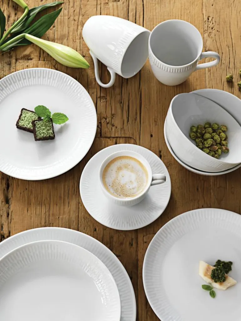Relief Kjennetegnet på Relief-serien er den fine hvite porselenskvaliteten med den stilfulle detaljen i form av en dekorasjon på fanen. Dekorasjonen er tidløs, diskret og har et moderne og enkelt uttrykk.Fremstilt i super hvit kvalitetsporselen.Tåler både ovn, frost, mikrobølgeovn og oppvaskmaskin så lenge du følger vår pleieveiledning.