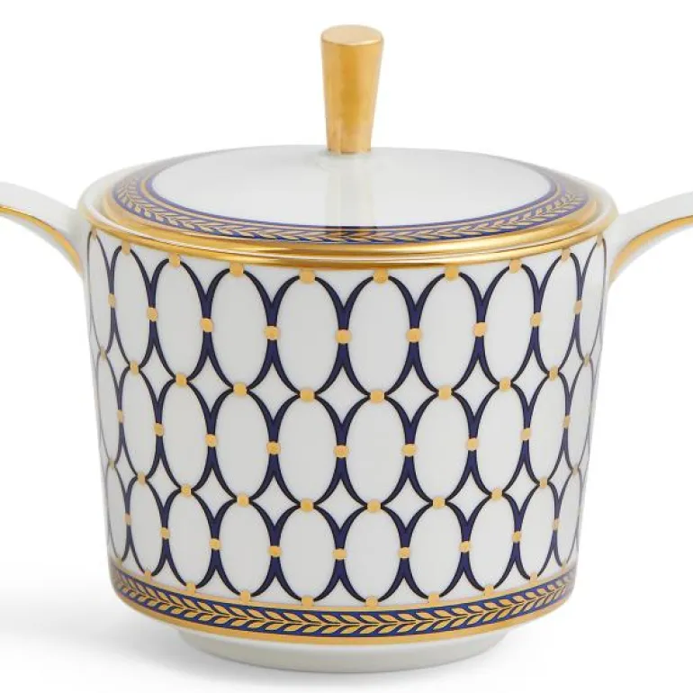 Renaiss Gold Cov Sugar 0.2L. Med inspirasjon fra Wedgwoods betydelige arkiv er Renaissance Gold gjennomsyret av autentisitet, samtidig som den opprettholder en moderne, klassisk stil. Ved å kombinere elegante interiørdesignmotiver med den rene, ovale formen til den berømte Wedgwood Cameo, sammen med marineblått, 22 karat gull og dristige florentinske aksenter fanges dette i et slående, elegant mønster. Perfekt til formelle middager, men kan også brukes som et storslått alternativ til hverdags. Ekspressive mønstre er flotte i kombinasjon med vanlig hvitt, slik at man kan skape sitt eget uttrykk i borddekkingen.