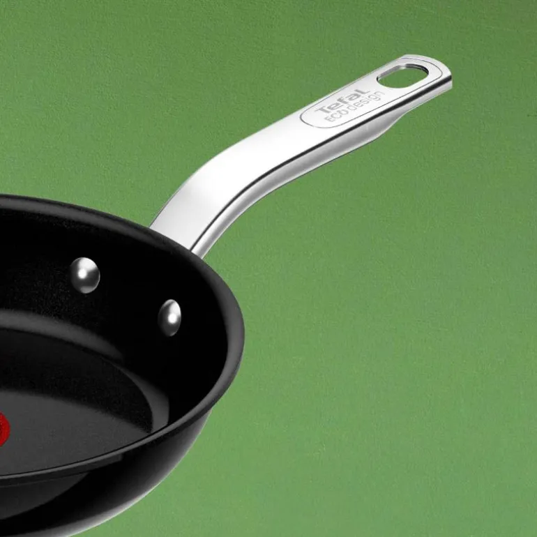 Svart stekepanne 24 cm fra Renew+ serien til Tefal. Tefals serie av keramiske non-stick-stekepanner, Renew+, er perfekte panner for å lage deilige og sunne måltider raskt og enkelt. Serien passer ekstra bra for den miljøbevisste kokken ettersom den er produsert av mer bærekraftige materialer. Serien er laget i en ny generasjon av keramiske non-stick-stekepanner der du bare trenger å bruke litt fett – eller ikke fett i det hele tatt – som bidrar til en sunnere matlaging. Produktene er også laget for å vare lenge uten å bli flekkete.