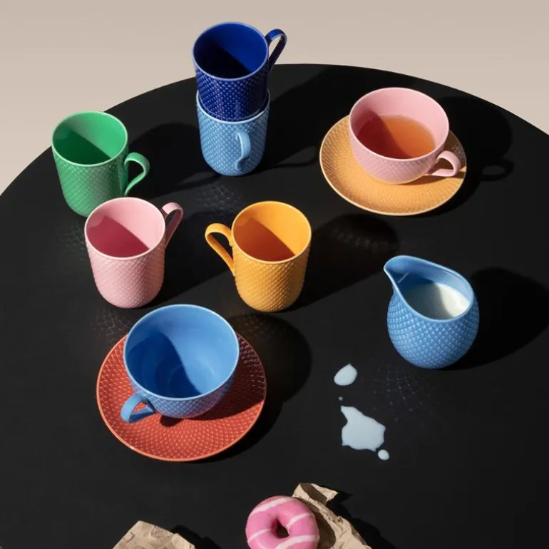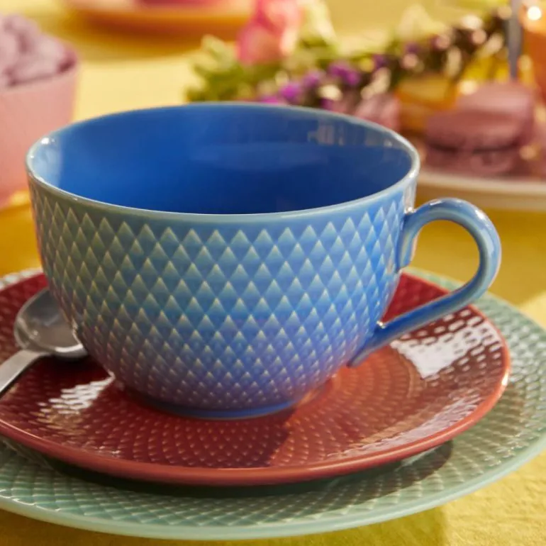 Nyt en varm kopp te fra tekoppen fra Lyngby Porcelæns Rhombe Color serie. Rhombe tekopp med underskål er i en flott fargemiks i blå/terracotta farger, koppen rommer 39 cl, derfor er den helt perfekt til en god kopp te. Mønsteret stammer fra Lyngby Porcelæns arkiver, og i denne nyfortolkningen av et mønster får vi tilført både eleganse og funksjon til den stilrene tekoppen. Rhombe Color tekopp er med sine klare rene linjer passer perfekt til en lekker og fargerik borddekking. Du får 2 års garanti på kopp med underskål fra Lyngby Porcelæns Rhombe serie. Så skulle uhellet være ute, og din kopp eller underskål får skår eller brudd, kan denne heldigvis byttes inn innenfor 2 år fra kjøpsdato. Rhombe serviset tåler oppvaskmaskin