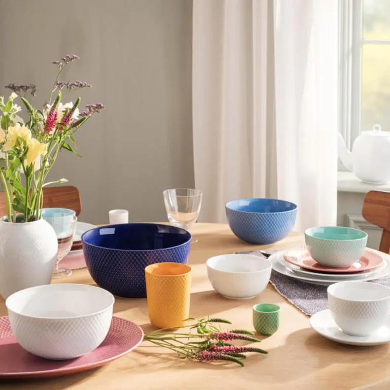 Med en lekende tilnærming til hvordan farger og elementer kombineres, bringer Rhombe Color nytt liv til den eksisterende Rhombe-kolleksjonen i hvitt. Rhombe-mønsteret er hentet fra Lyngby Porcelæns store designarkiv og ble første gang sett på den populære, ildfaste Danild-serien i 1961. Rhombe tekopp med underskål har 2 års bruddgaranti.