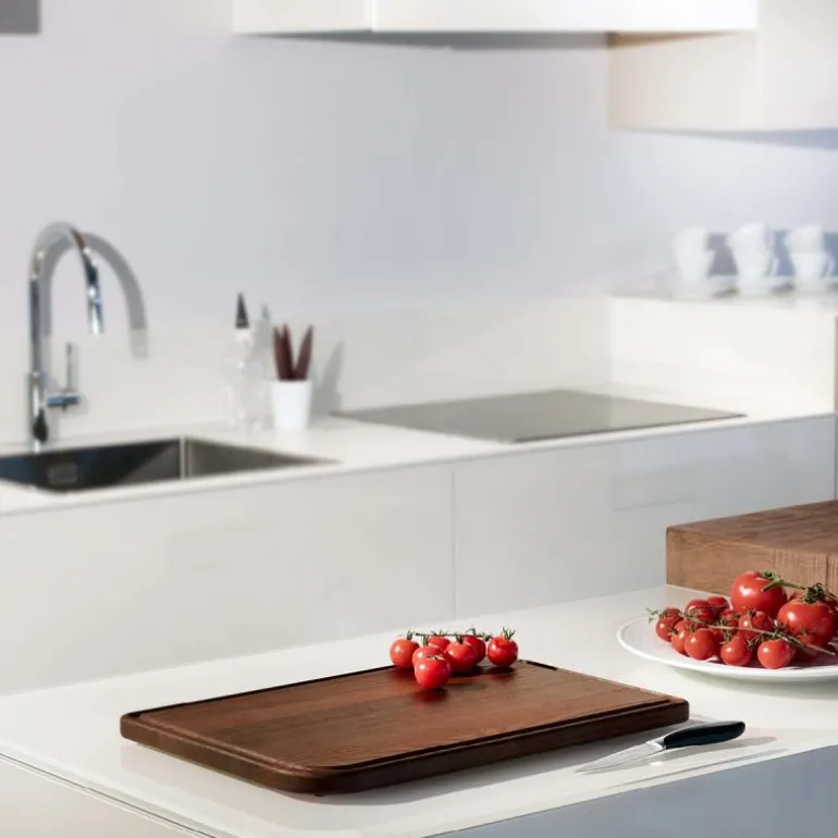 Dette sjærebrettet fra itelienske Legnoart skaper en veldig fin følelse hjemme på kjøkkenet. Skjærebrettet er en del av Rialto-serien med fire skjærebrett i forskjellige størrelser, asketre og kjennetegnes av helt spesiell finish. Denne behandlingen utføres gjennom en høteknologisk varmebehandling under høy temperatur mellom 180 grader – 230 grader. Denne såkalte termiske behandlingen gjør at skjærebrettet får en mer slitesterk men også mørkere overflate, men ikke minst en meget god kvalitet. Skjærebrettet er håndlaget, vannaavstøtende og også motstandsdyktig mot ytre klima. Alle skjærebrettene i Legnoarts Rialto-serie har en renne som fanger opp juine og olje fra mat. LEATM er en Medium størrelse med følgende mål: 32x24x2,2 cm. Rialto-serien har fire skjærebrett i forskjellige størrelser: Medium, Large, XL, XXL.