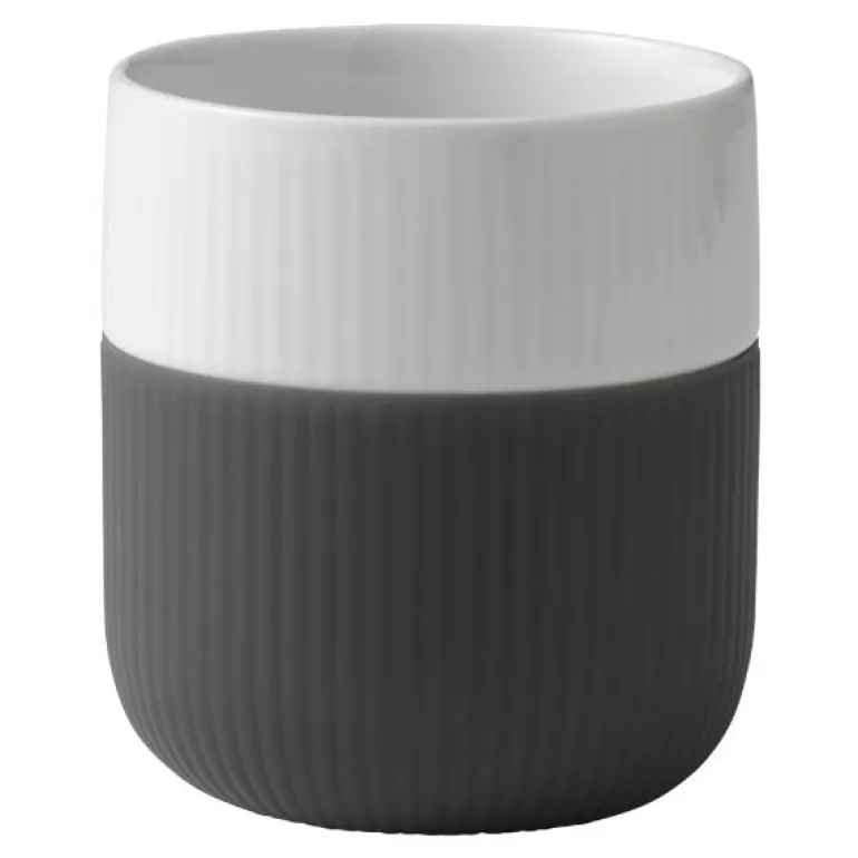 Riflet Contrast representerer en perfekt miks mellom det estetiske og det funksjonelle. Designet er elegant og moderne, skapt ut fra en dyp respekt for Royal Copenhagens historie og tradisjoner. Kolleksjonen er preget av sterke farger og de tradisjonelle, dekorative riflene, som først ble introdusert i 1775 og er blitt ett av Royal Copenhagens kjennetegn. Dens funksjonelle design er en hyllest til dansk minimalisme og er ideell for daglig bruk og spesielle anledninger, – både innendørs og utendørs. Riflet Contrast representerer god smak, og er designet for det moderne mennesket som nyter livet til det fulle. Designer H.C. Gjedde. Contrast-kruset tåler oppvaskmaskin (og mikrobølgeovn), men det anbefales å ta av silikonet før vask.