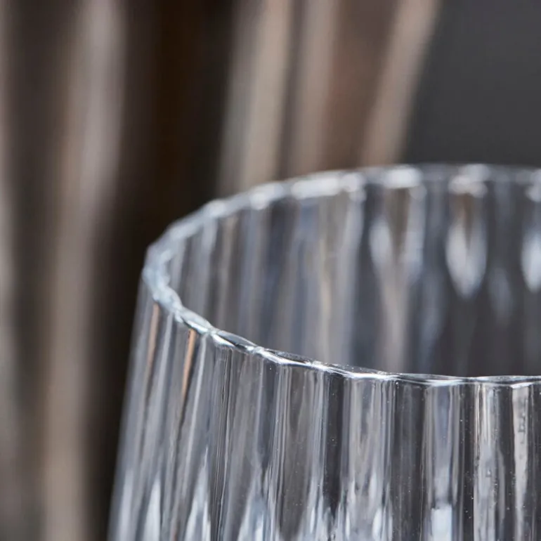 Rill vannglass fra House Doctor kombinerer moderne design med tidløs funksjonalitet. Det rillede mønsteret gir glasset et raffinert uttrykk som passer til enhver anledning, fra frokosten med juice til en hyggelig middag med gjester.