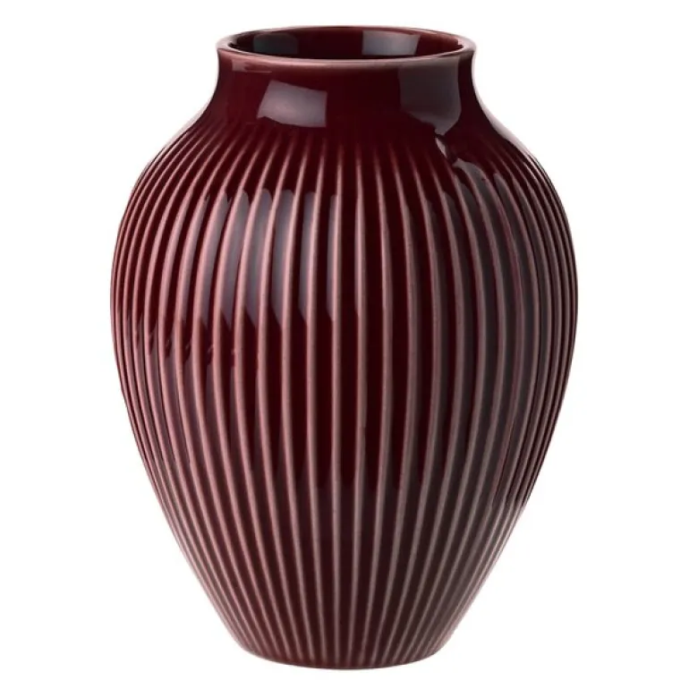 Ripple vase 12,5 cm i berry fra Knabstrup er et vakkert stykke keramikk med en historie som strekker seg tilbake til slutten av 1940-tallet. Denne vasen har en elegant og tidløs form som passer perfekt i dagens hjem, med moderne nordiske fargetoner som berry, som gir et stilrent og hyggelig uttrykk.