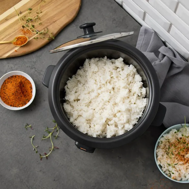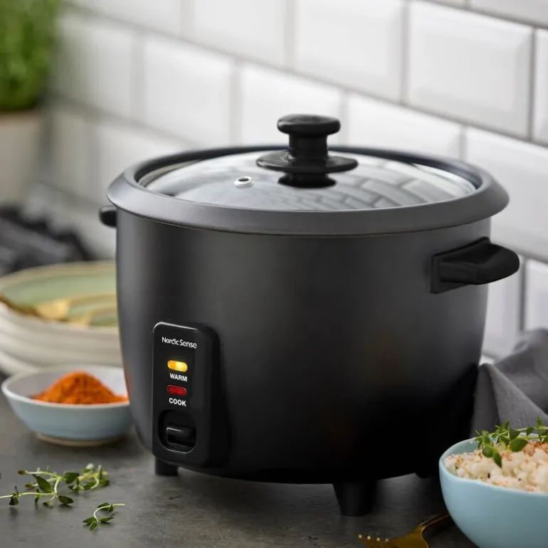Riskoker på 1,5 liter fra Nordic Sense gjør det enkelt og raskt å lage perfekt ris hver gang. Med sitt keramiske non-stick-belegg er rengjøringen uanstrengt, og glasslokket lar deg følge med på tilberedningen uten å løfte lokket. Denne riskokeren er designet for moderne kjøkken og produsert uten PFAS. Den romslige kapasiteten på 1,5 liter gjør den ideell både for små og større måltider.