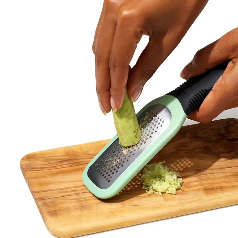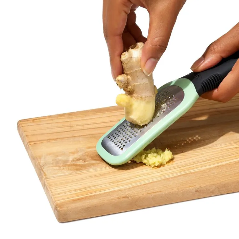 OXO Rivjern til ingefær og hvitløk på 18 cm er det ideelle verktøyet for å forvandle hele ingefærrøtter og hvitløksfedd til en intens, smakfull pasta som løfter rettene dine til nye høyder. Dette håndholdte rivjernet i rustfritt stål er utstyrt med sylskarpe tenner som enkelt takler fiberrike ingredienser som ingefær, gurkemeie og pepperrot.