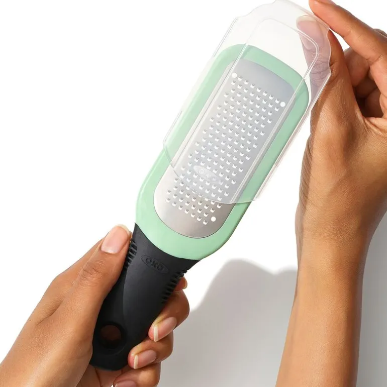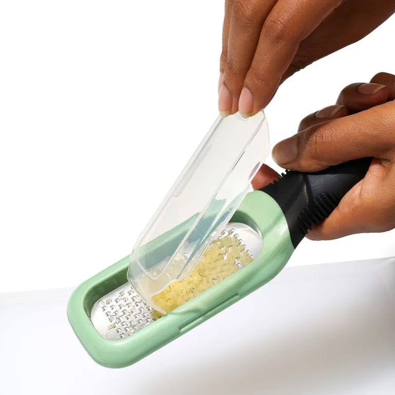 Det myke, sklisikre håndtaket gir et behagelig og sikkert grep, slik at du kan arbeide effektivt og komfortabelt. Rivjernet leveres med et praktisk deksel som også fungerer som en skrape for å samle opp ingrediensene fra baksiden, slik at ingenting går til spille. Dette robuste kjøkkenredskapet tåler oppvaskmaskin og kan enkelt plasseres i øverste kurv for rask rengjøring.