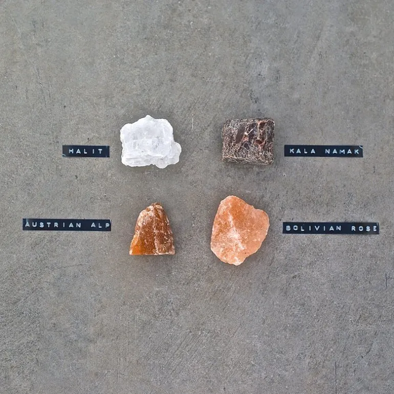 - Rosa himalayan bergsalt, brun østerrisk alp rockl salt, bolivian rose rock salt, eksklusivt persisk blåt bergsalt, transparent halit bergsalt, svart indisk kala namak bergsalt
