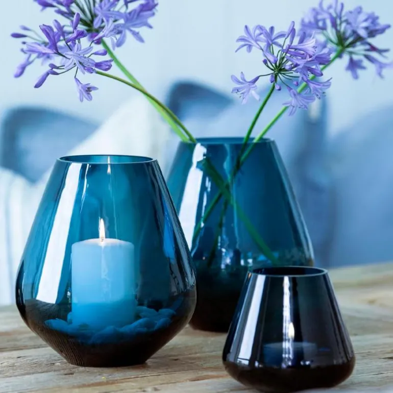 Skap en stemningsfull atmosfære i hjemmet ditt med denne havblå skjønnheten – og varier mellom å bruke den som lykt og vase.