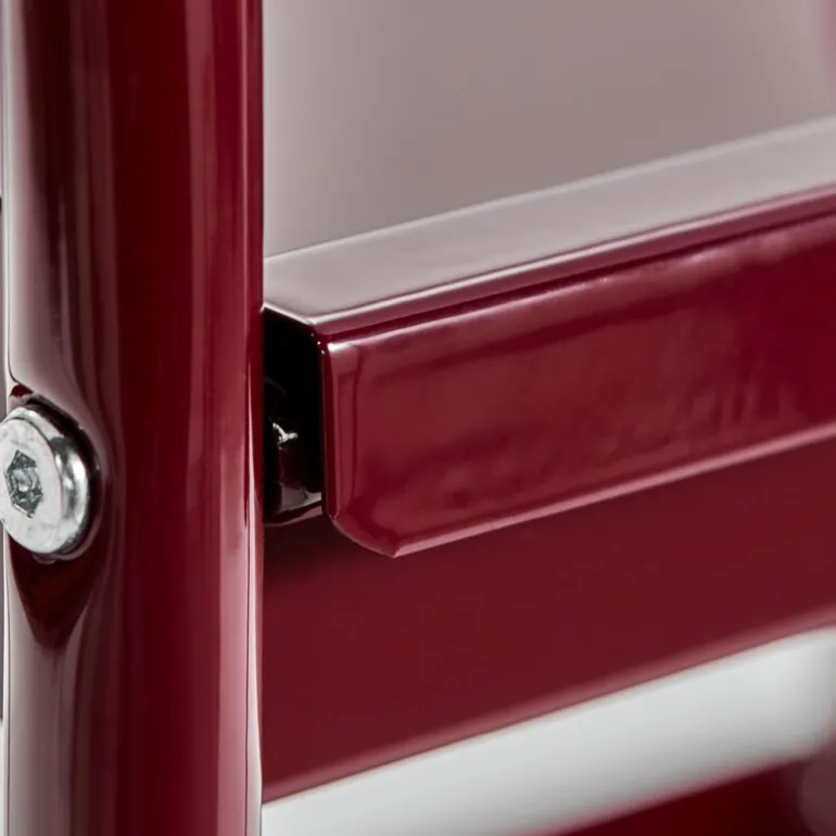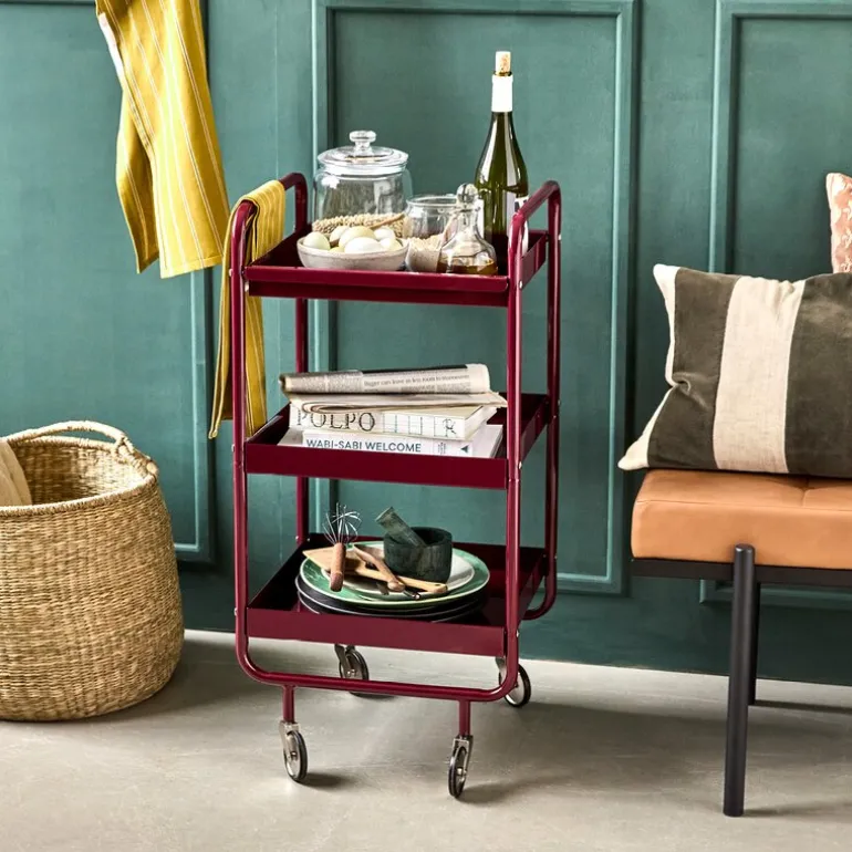 Roll serveringsvogn 85 cm fra House Doctor er et gjennomført møbel som gir hjemmet en funksjonell og estetisk oppgradering. Vognen er laget i stål og lakkert i en dyp bordeaux farge som gir karakter og tyngde til interiøret.