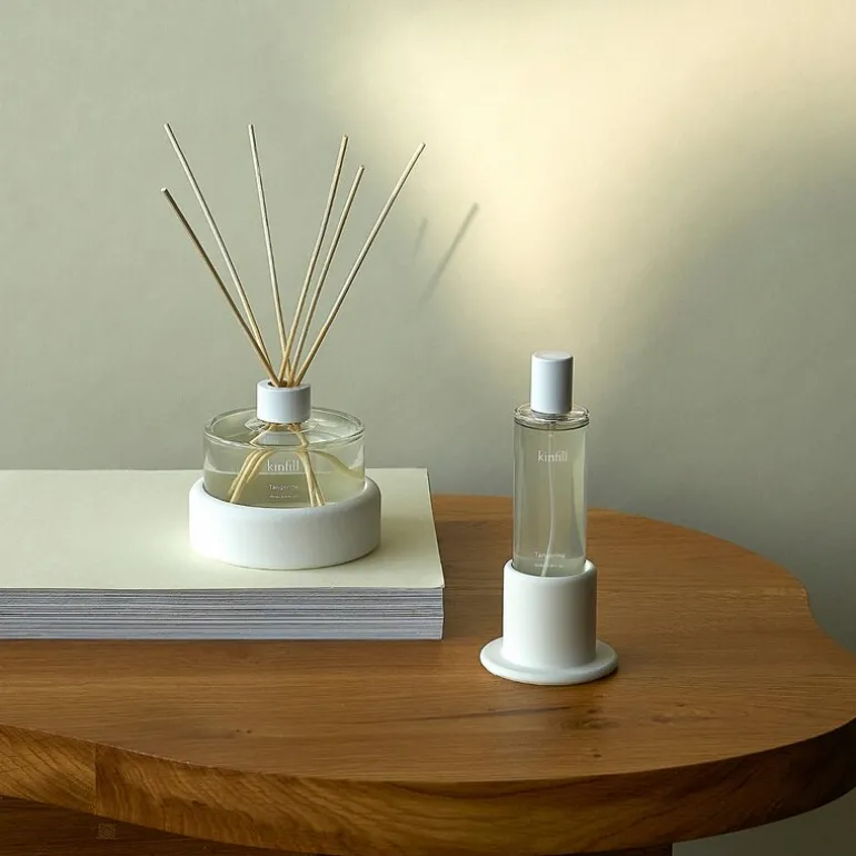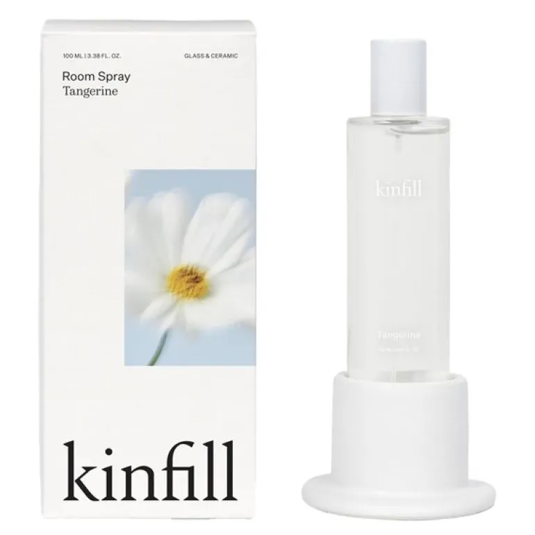 Romspray 100 ml tangerine fra Kinfill. Med en brukervennlig dyse for sølfri påføring, forbedrer romsprayen ethvert innendørsrom. Denne trygge formelen, laget i Nederland, holdes i en unik glass- og keramikkholder laget i Portugal. Duft med noter av neroli, bergamott, appelsinblomst, ylang-ylang og floral musk.