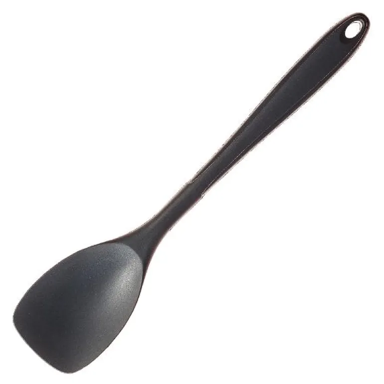 Røre- og serveringsskje fleksibel 30cm antrasittgrå Skjeen gjør det enkelt å røre i og servere maten. Skjeen er laget av ultraholdbar silikon. Den kan motstå mellom -40 og 300 grader og kan enkelt rengjøres i oppvaskmaskinen.