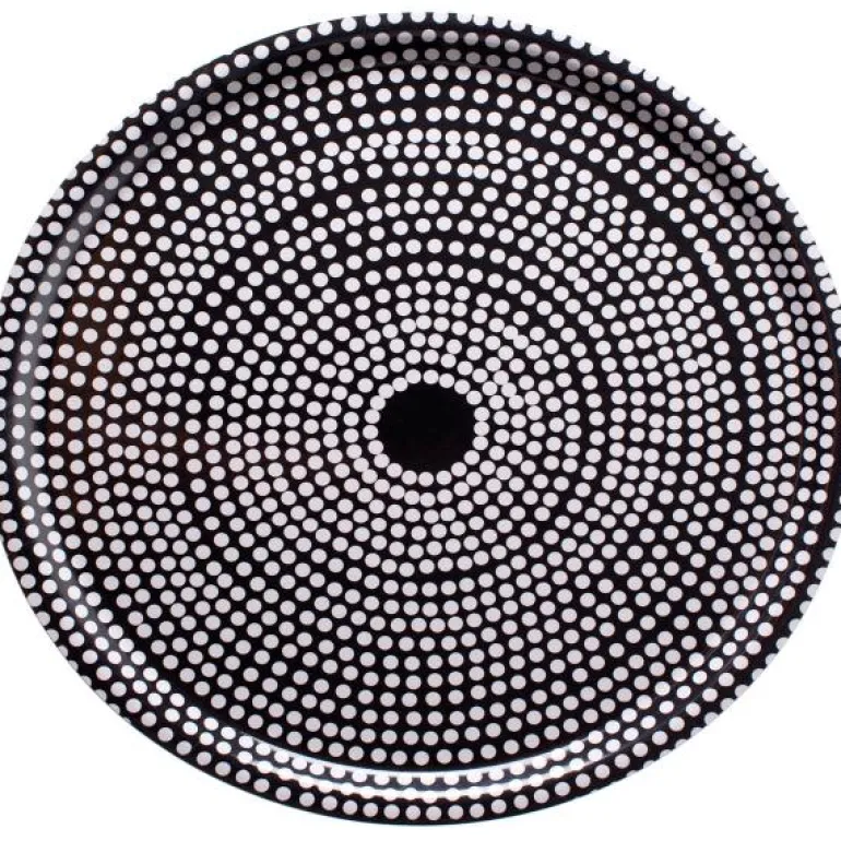 Laget av laminert bjørkekryssfiner, har dette store runde lettvektsbrettet det svarte og hvite Fokus-mønsteret. Brettet måler 46 cm i diameter.