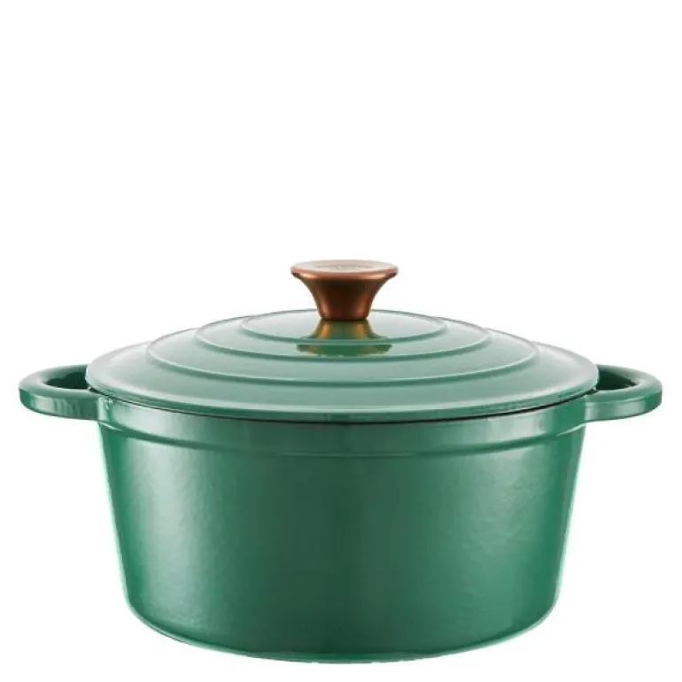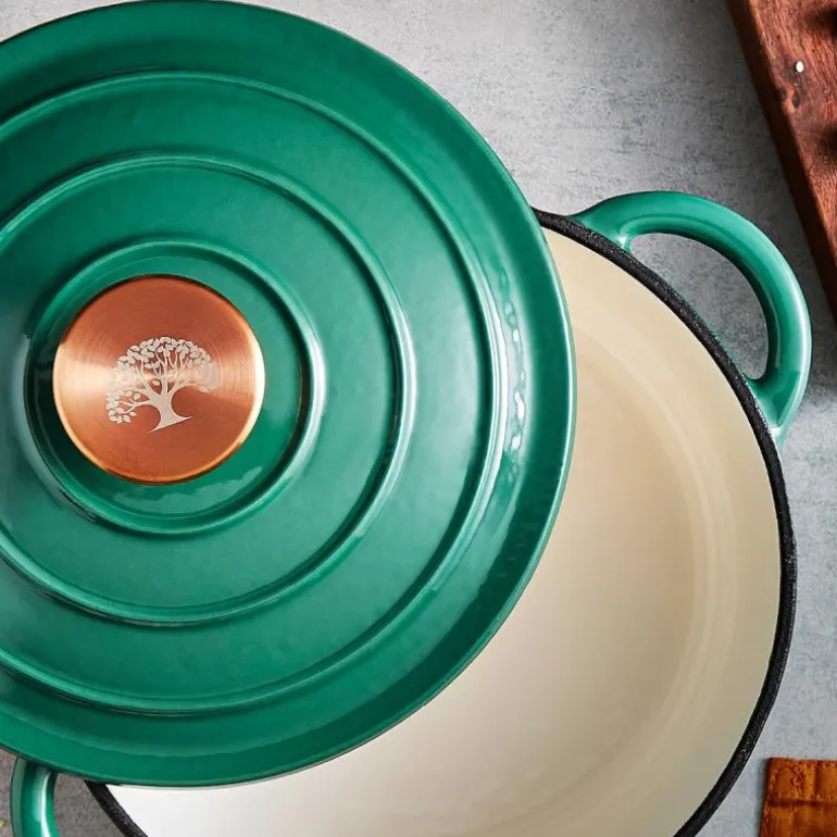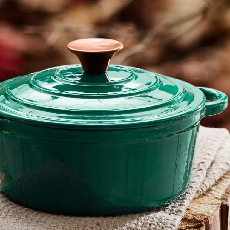 Denne høykvalitets støpejernsgryten fra Barbary & Oak har en diameter på 24 cm og et volum på 4 liter. Med sin elegante grønne finish er denne gryten perfekt for å tilberede deilige gryter som passer hele familien. Støpejernskonstruksjonen sørger for effektiv varmebevaring, og den emaljerte overflaten gjør den enkel å rengjøre samtidig som den hindrer maten i å feste seg, og bevare smakene intakte.