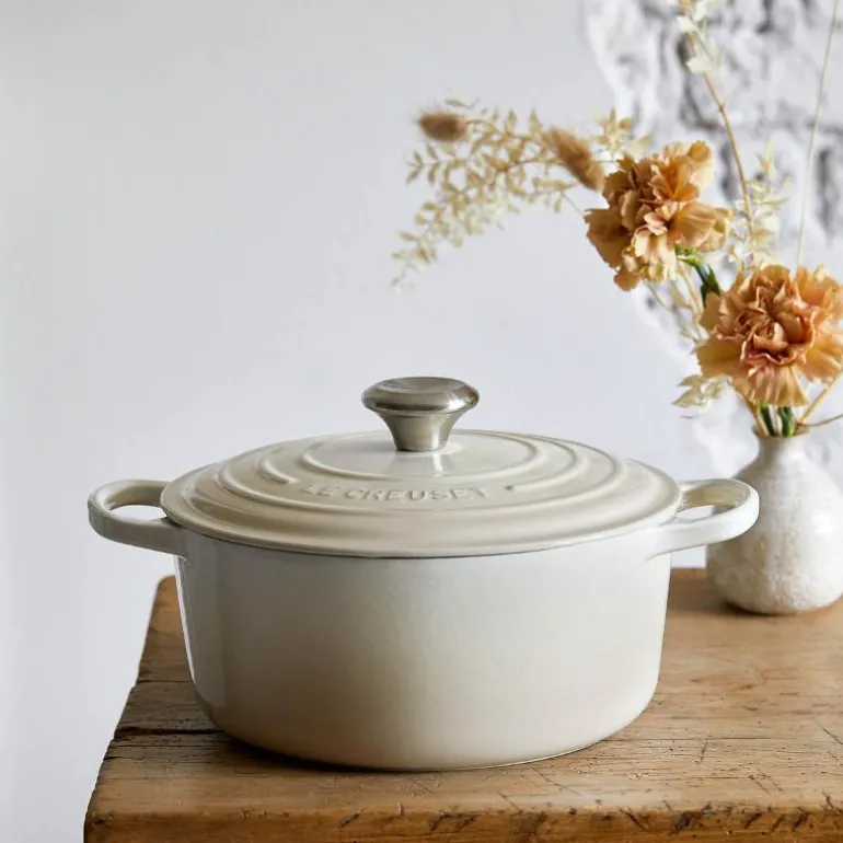 Den runde støpejernsgryten fra Le Creuset er en uunnværlig klassiker på kjøkkenet. Støpejern er kjent for å være et av de beste materialene til matlaging, da varmen fordeles jevnt og ensartet i gryten. Dette gjør den ideell til f.eks. langkokte retter eller grytebrød.