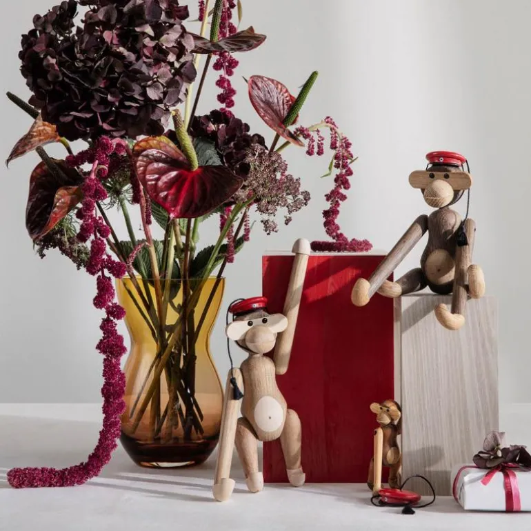 Russelue rød. Kay Bojesen var en mester i lekne og finurlige detaljer, og elsket å legge dem til i designen for å fortelle en historie og sette i sving fantasien. I tråd med Kay Bojesens lekne tilnærming til design, bringer den røde Russelue en helt ny fortelling til apen ved uteksamineringen på videregående, og markerer et nytt kapittel i ungdommens liv.
