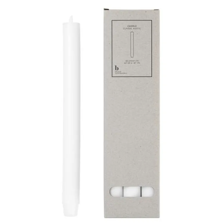 Eske med 6 stykk Rustic kronelys fra Broste i fargen pure white. Lyset med den flate toppen og en litt kraftigere dimensjon (2,6 mm) enn de klassiske kronelysene, gør dette lyset til noe spesielt, ut over at det har lengre brennetid.
