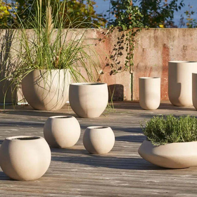 Dette settet med to rustikke blomsterpotter fra GUS Design i sandfarge er et elegant og praktisk tillegg til ethvert hjem eller hage. Pottene er laget av en lett blanding av sement og fiber, noe som gjør dem både lette å håndtere og svært slitesterke.
