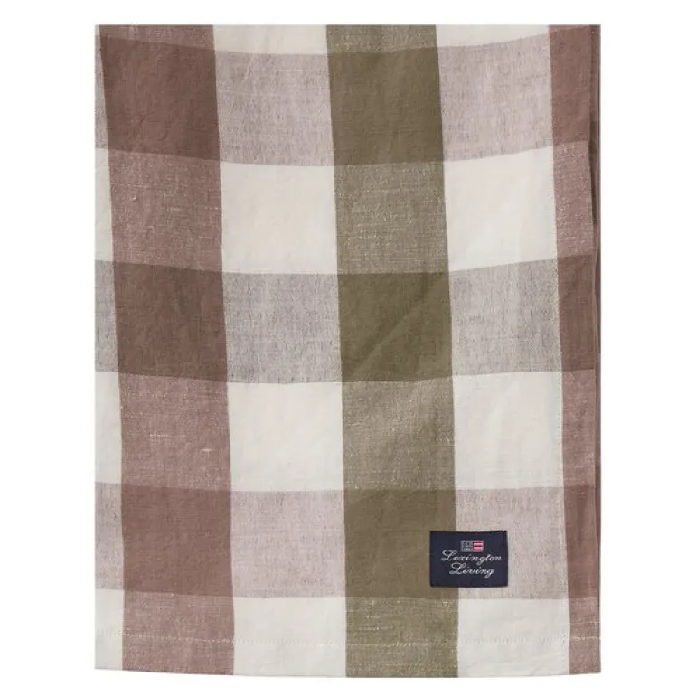 Rutete lin/bomulls duk 180×180 cm oliven/hvit/brun fra Lexington. Med en rutete duk i linblanding tilføres spisestuen et snev av Lexington-stil og et viktig element for å gi bordet ditt et personlig preg. Denne er laget av en ultramyk blanding av lin og bomull i et klassisk rutemønster, noe som gjør den perfekt til hverdagsbruk. Kombiner den med matchende servietter for en 100 % koordinert look.