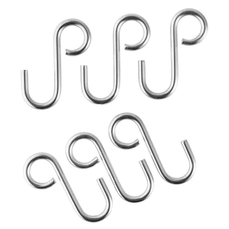 Med S-kroker fra Eva Solo får du en enkel og elegant måte å utnytte plassen på kjøkkenet. Disse krokene er laget av rustfritt stål og er perfekte til oppheng av kjøkkenredskaper, panner og annet utstyr på en kjøkkenstang.