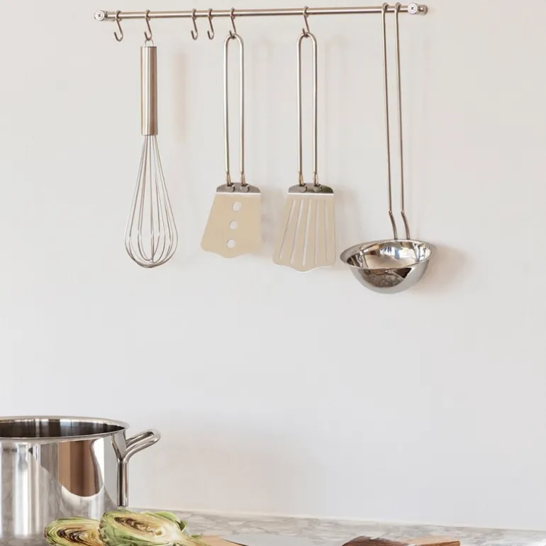 Den slitesterke konstruksjonen sikrer lang holdbarhet, mens det tidløse designet passer inn i enhver kjøkkeninnredning. Pakken inneholder seks kroker som gir deg fleksibilitet til å skape en mer organisert og tilgjengelig kjøkkenplass.