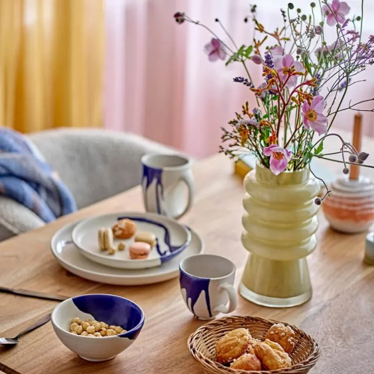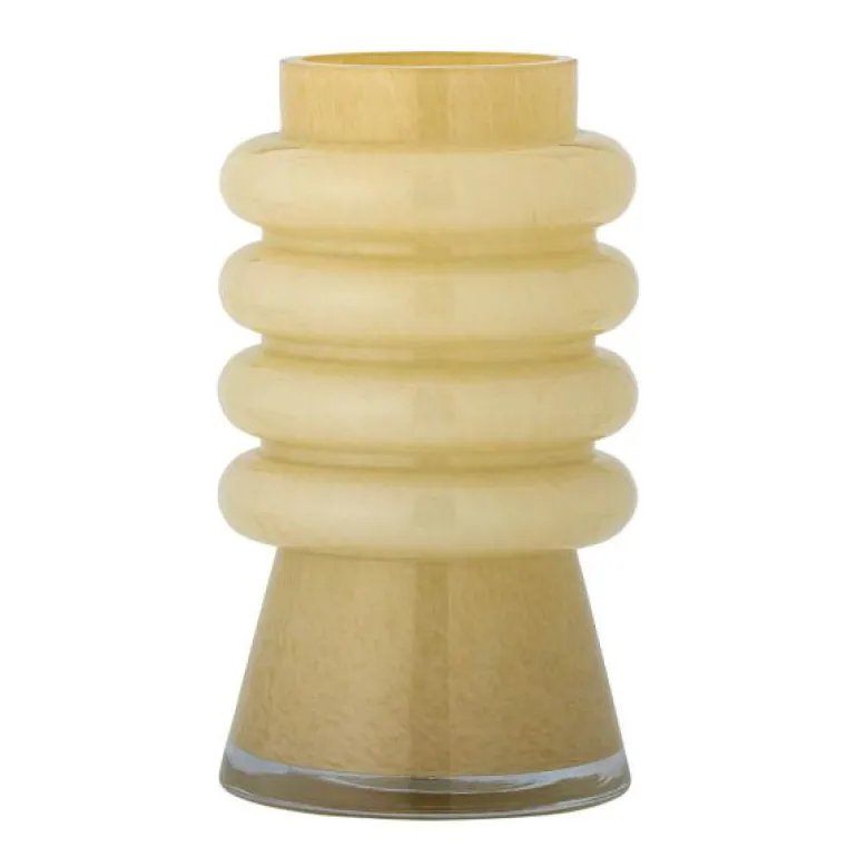 Sahara vase 23 cm gul fra Bloomingville er laget av glass i en vakker gul nyanse og i en organisk form. Vasen er munnblåst og derfor kan små variasjoner i størrelse, form og farge forekomme – dette bidrar bare til å gjøre hver vase unik.
